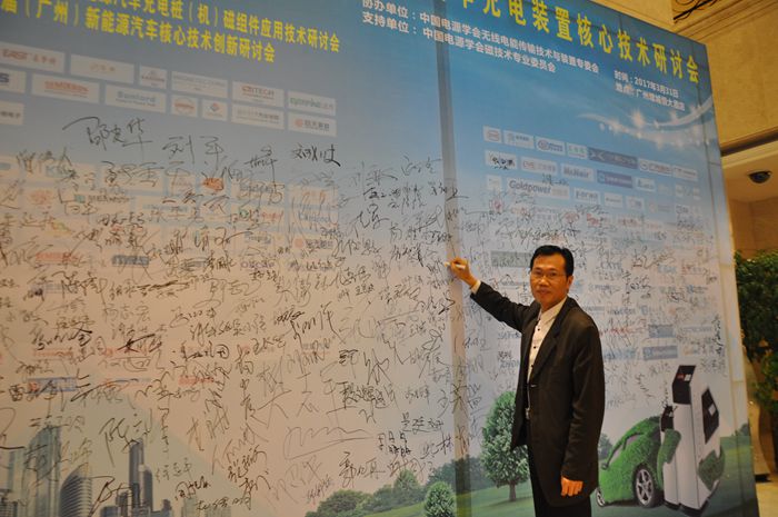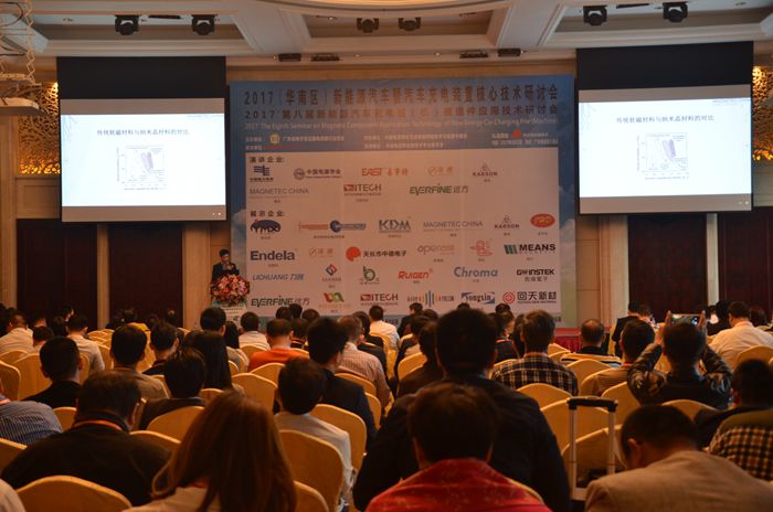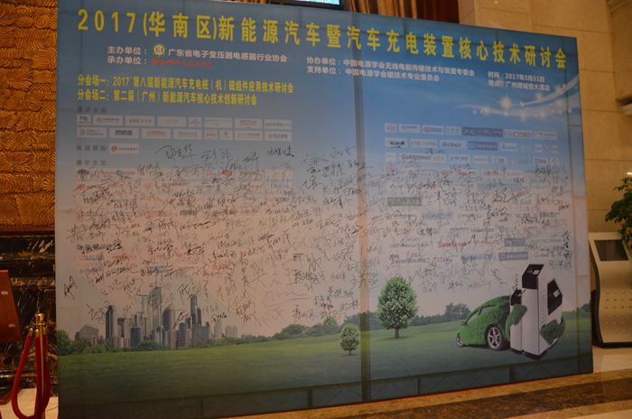 3月31号, “2017第八届新能源汽车充电桩(机)磁组件应用技术研讨会”在广州增城恒大酒店盛大开幕,会议现场气氛热烈,超过400位新能源汽车和充电桩行业人士莅临现场,关注新能源汽车充电桩磁组件的新发展。