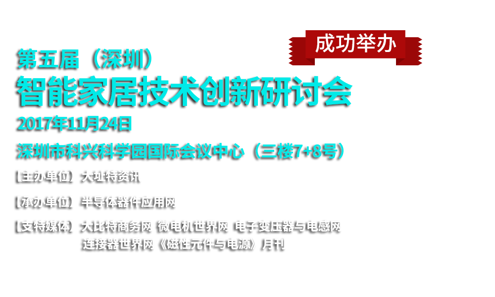 11月24日,第五届(深圳)智能家居技术创新研讨会将汇聚国内外著名专家学者和半导体龙头企业高管,为智能家居、家电、安防、智能硬件照明等企业管理层、工程、研发和设计等专业人员带来精彩技术干货演讲,帮助企业将产品提升到一个新的高度,为全世界消费者带来更高品质的体验。