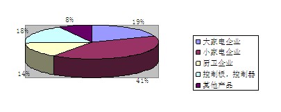 参会人员所在的企业,小家电企业占41%,大家电企业占19%;厨卫企业占14%,控制器企业占18%,其他家电产品企业占8%