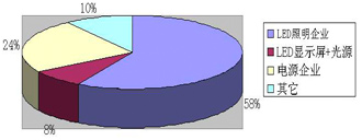 参会人员所在的企业,LED照明企业占58%,电源企业占24%,LED显示屏及光源占8%:少部份充电器,控制器,模块共占10%