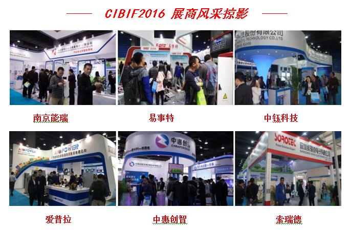 CIBIF 2016于2016年3月30日至4月1日在广州琶洲国际采购中心完美演绎,展出10000平米,224家企业得到全面展示,包括易事特、南京能瑞、沃特玛、比亚迪、特变电工、菊水皇家、英可瑞、中钰科技、中惠创智、爱普拉、索瑞德、晶福源、南网能源、国耀电子、丰宾电子等先行企业聚首羊城!期间接待来自全球10多个国家和地区的24762名专业观众,海外观众达到320人。三天展示时间51%展商达成订单意向,77%展商达到展示形象目的,82%展商表示对参展效果满意。CIBIF 2016共举办了多场技术研讨会,吸引众多知名媒体报道,OFweek锂电网重量级锂电产业研讨会引爆展会现场。参会嘉宾涵盖发改委、经信委、环保部门、新能源汽车、新能源系统、电池、风光储能、电力系统、银行、通信、交通、地产等多行业决策人参与,大会达成“技术创新 • 资源互享”的目的,演讲嘉宾与听会嘉宾各取所需,达成所盼。CIBIF 2017将继续以引领行业的关键技术与市场展望为导向,召开一系列高质量峰会。