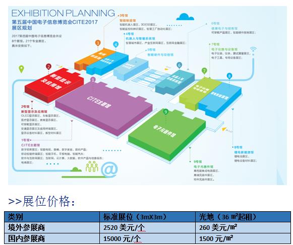 注:深圳市平板显示行业协会会员单位、广东省半导体行业协会会员单位、光电周暨彩电节历届参展商及CITE2016老客户如参加CITE2017将享受特别优惠大礼,即在2016年11月10 日前报名享受7折优惠(新客户8折);1月30日前报名享受8折优惠(新客户9折)。