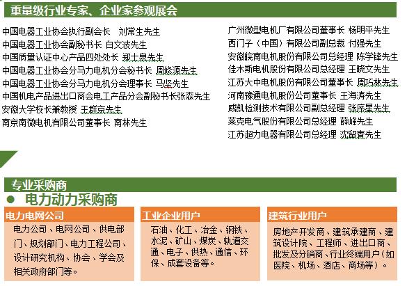测试仪器及生产设备、换向器、轴承、电机润滑油、电刷、模具、继电器、风机、热保护器 、保护与控制装置、真空设备、变频器、变压器、电机零部件及材料、 电机CAD设计软件、制造、管理软件、电机节能、各种永磁材料和软磁材料、绝缘材料、电碳制品 , 环保新技术等。