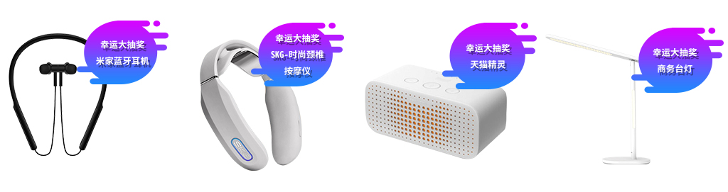 | 09:10 - 09:20 | 首轮抽奖(蓝牙耳机、颈椎按摩仪、天猫精灵) | |