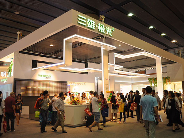 三雄极光、欧普照明、佛山照明、亚牌照明、得邦等照明龙头企业纷纷将各类照明灯具展示出。